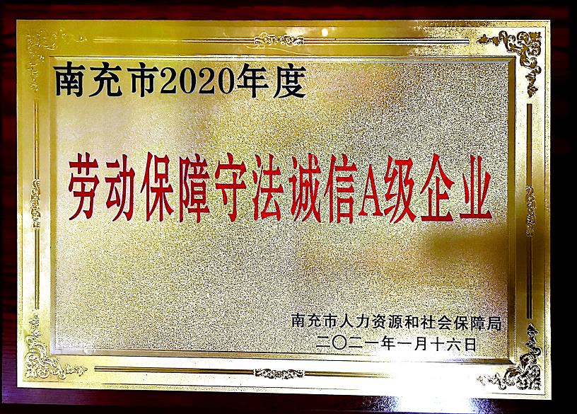 南充市2020年度勞動(dòng)保障守法誠信A級(jí)企業(yè)