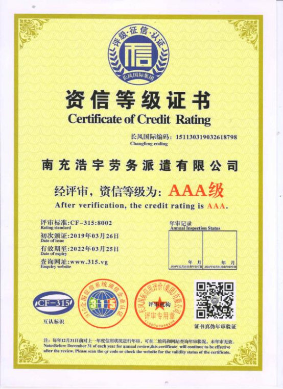 我公司獲得資信等級(jí)證書(shū)AAA級(jí)認(rèn)證