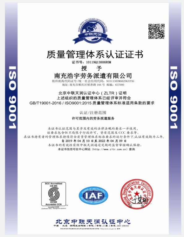 我公司獲得質(zhì)量管理體系認(rèn)證證書